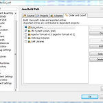 가끔 소스코드 수정도 안했는데 서버를 올리면 콘솔에서 Caused by: java.lang.ClassNotFoundException 에러를 뱉어낸다. 클래스가 컴파일에 참조가 안되서 발생하는 에러. 이럴때 해결방법 1. 이클립스 프로젝트 > Properties > Java Build Path > Order and Export Tab 에서 사용자 라이브러리 체크 (들어가보니 JRE System Library에 체크가 안되어있었다 흐어어어) 프로젝트 clean 후 서버 재스타트하면 정상 작동 완료!